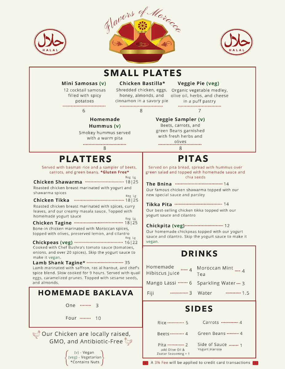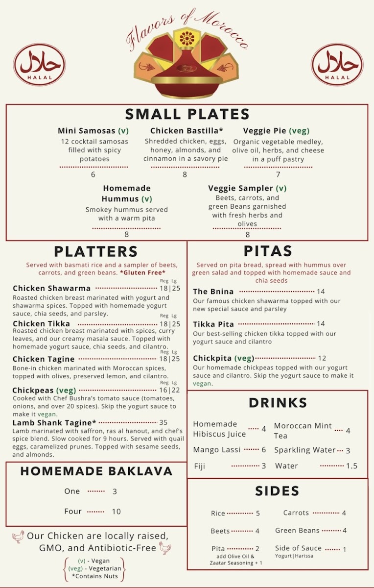 When you walk into Flavors Of Morocco - Southern Market Menu in Lancaster, you're in for a treat. Nestled at 100 S Queen St, this spot brings the vibrant tastes of Morocco right to your plate. With a menu that feels like a journey, every dish tells a story, from rich tagines to perfectly spiced couscous. Each bite offers a balance of bold, aromatic spices with fresh ingredients that transport you straight to the heart of Moroccan cuisine.